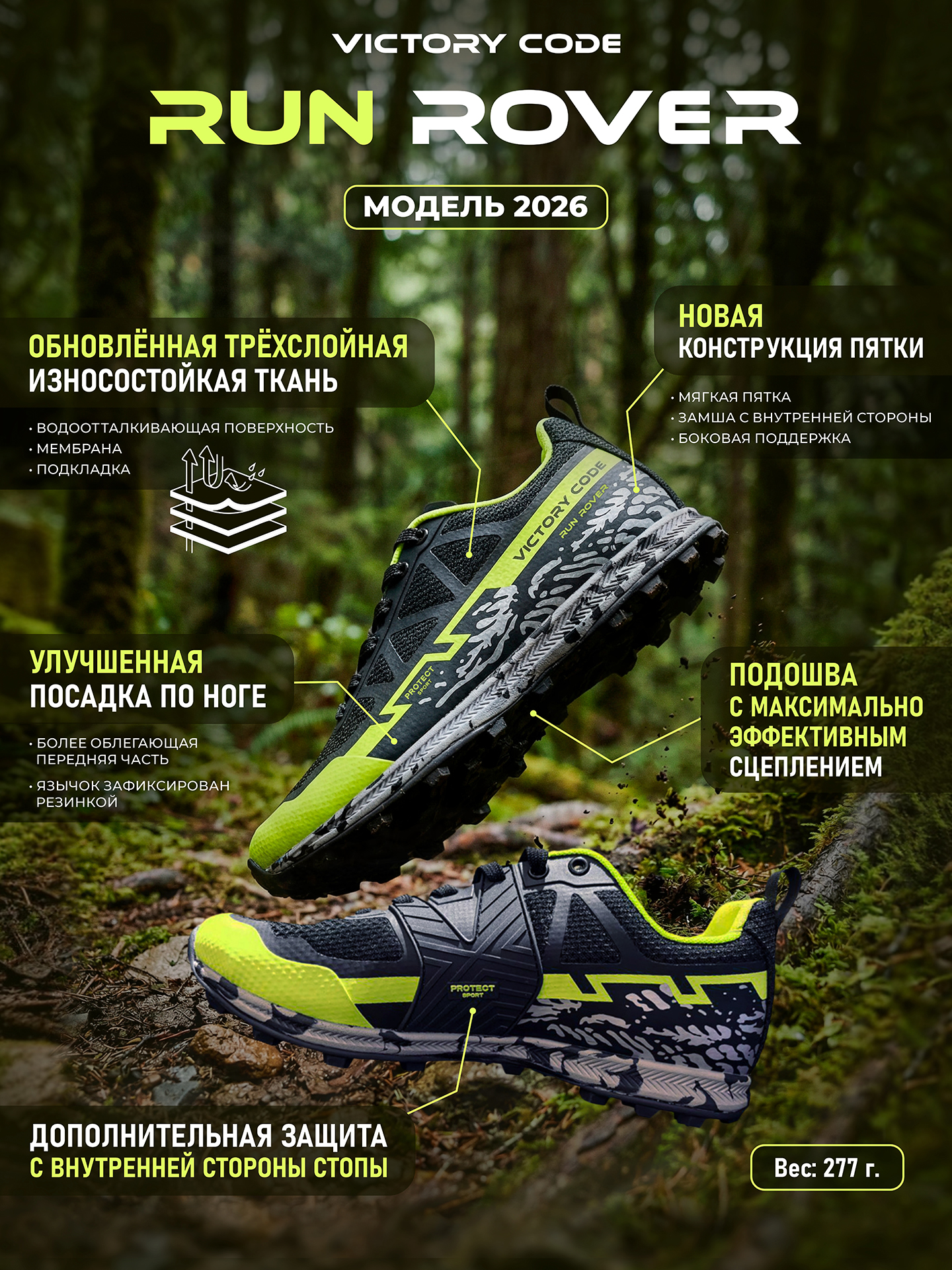 RUN ROVER - обновлённая модель обуви для спортивного ориентирования и трейла, которая обеспечивает максимальное сцепление, легкость и защиту при беге по грунту.